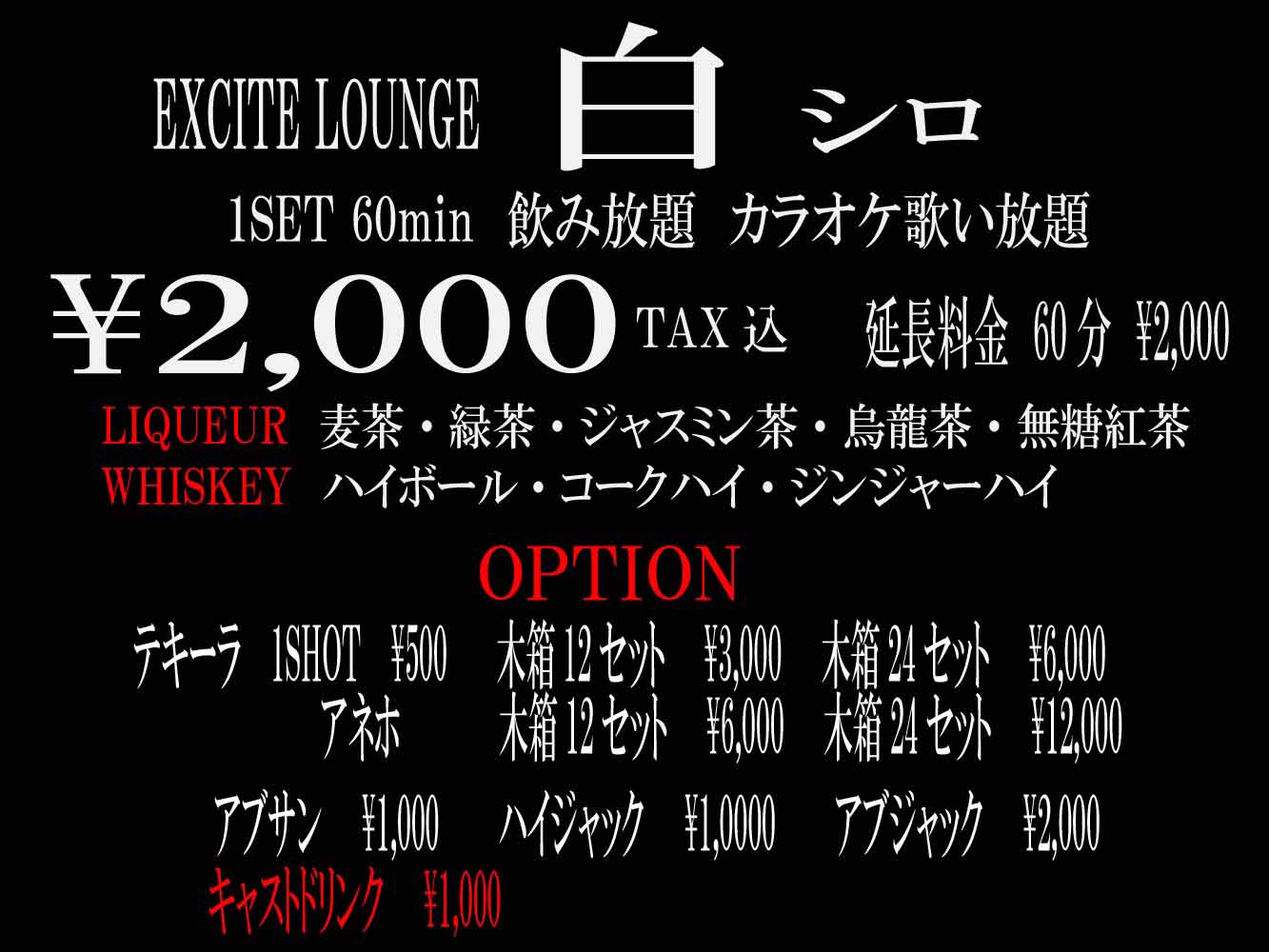 町田駅前 新規OPEN 23時間営業 思い切り飲んで歌えるBAR EXCITE LOUNGE 白 シロ